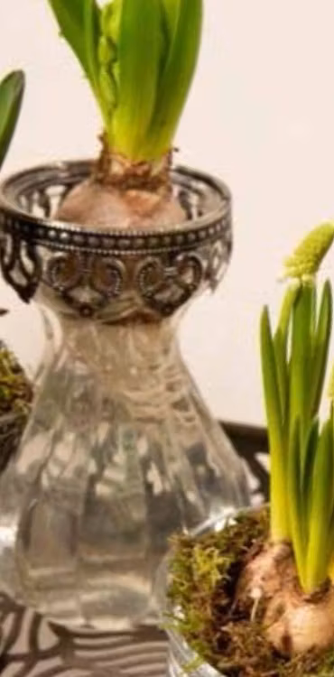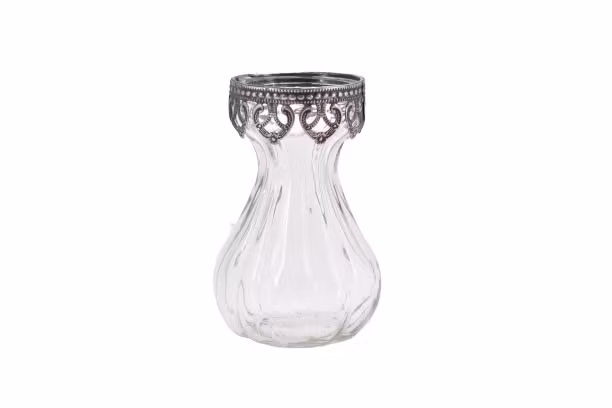 Vacker hyacintvas i glas med silverdekor i metall upptill.